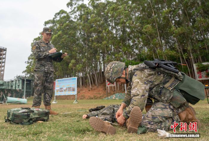 图为民卒正正在停止疆场救护考察。刘亮 摄